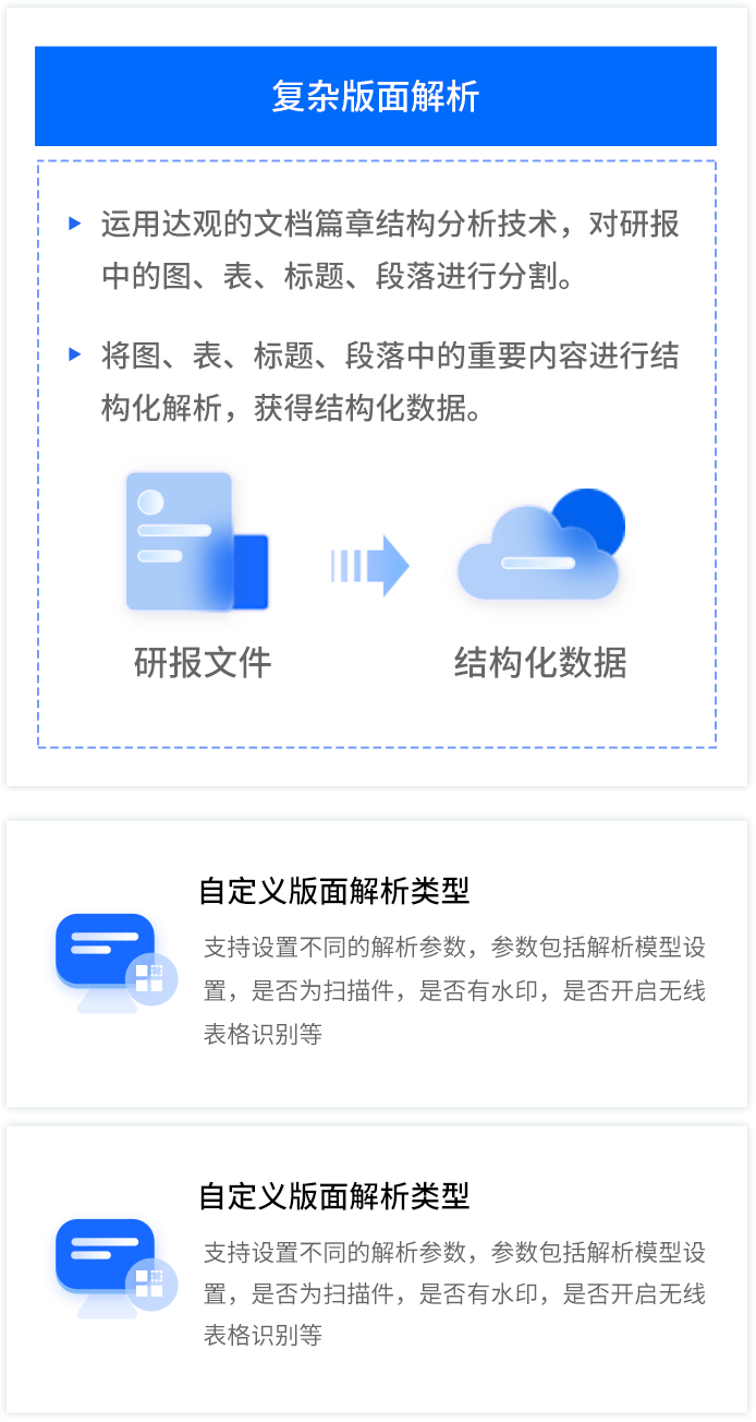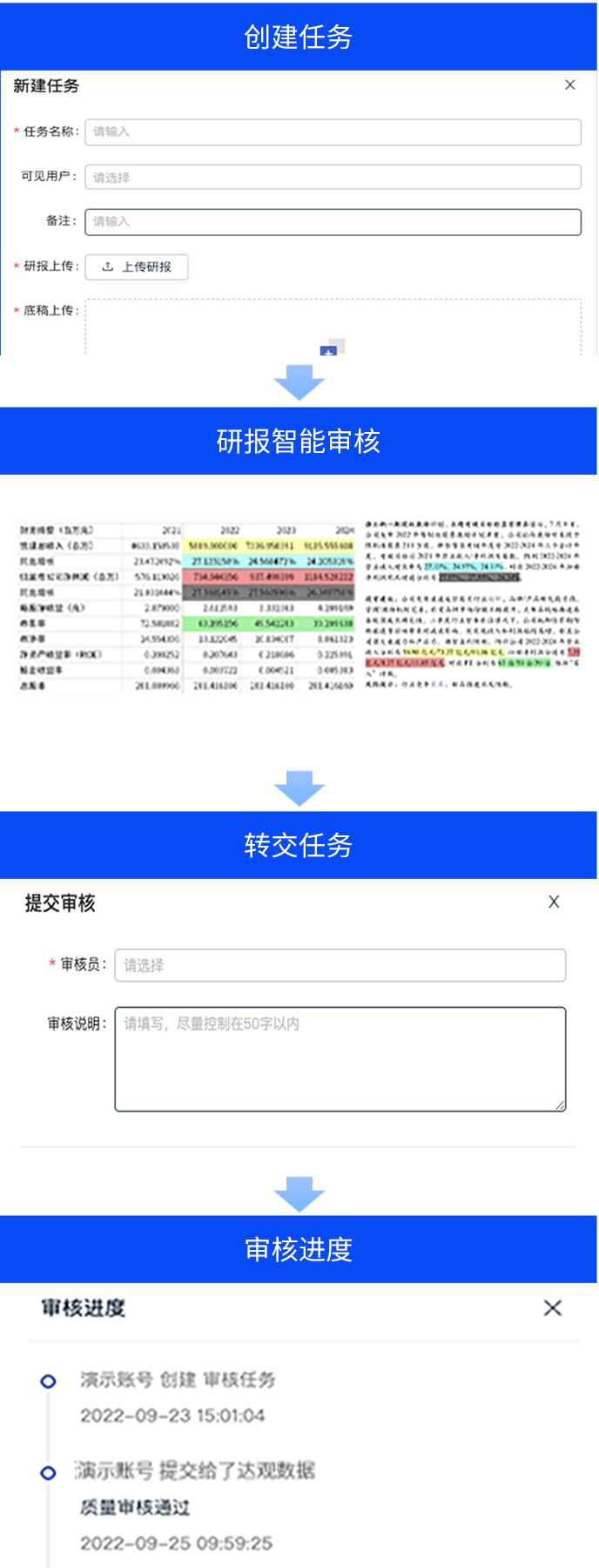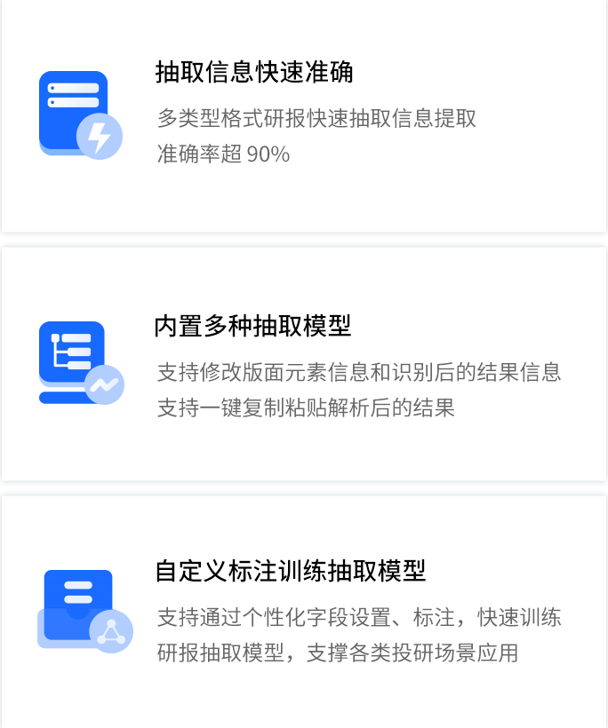 智能研报审核系统是PA真人视讯数据为券商研究所、买方研究组织等用户打造的集研报解析、抽取、审核、管理功能为一体的产品。集成OCR、NLP、机器学习等技术,对研报和底稿信息进行多方面抽取,并对研报进行数据、文本、观点等全方位的自动化审核, 同时对研报和底稿进行规范化、流程化管理,帮助用户提升工作效率,把控研报发布的时效性和合规性,全面降低出错风险。